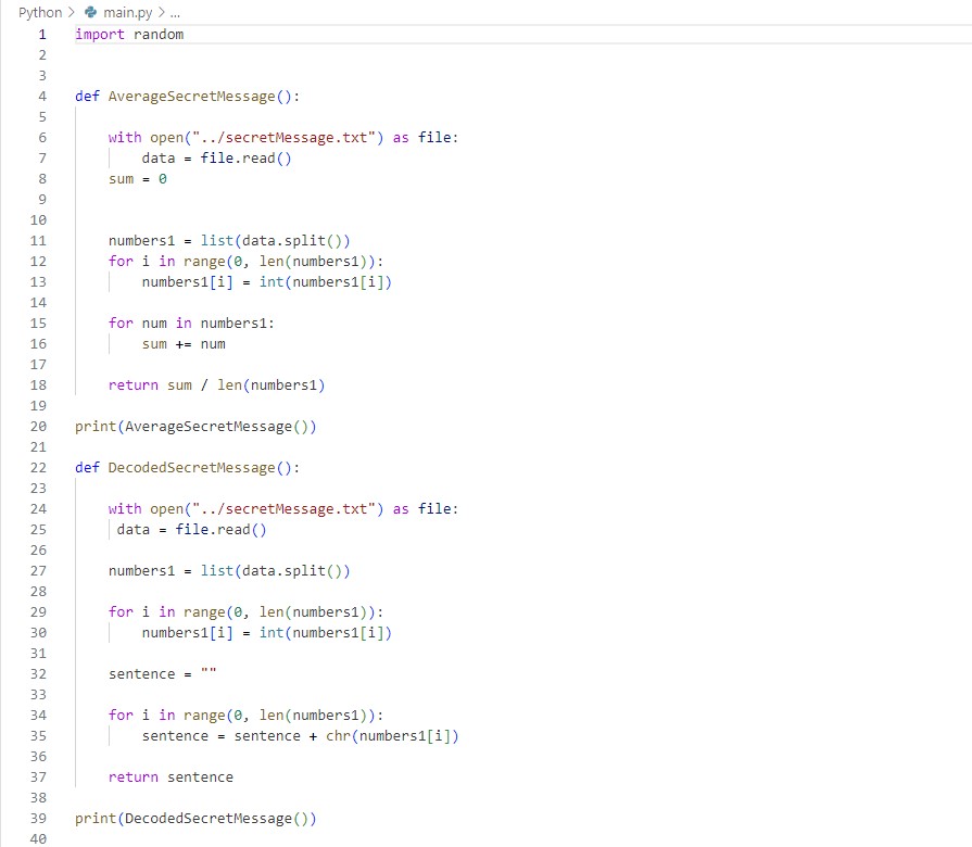 This project involved using many languages to complete it. This is an example from my Python code.